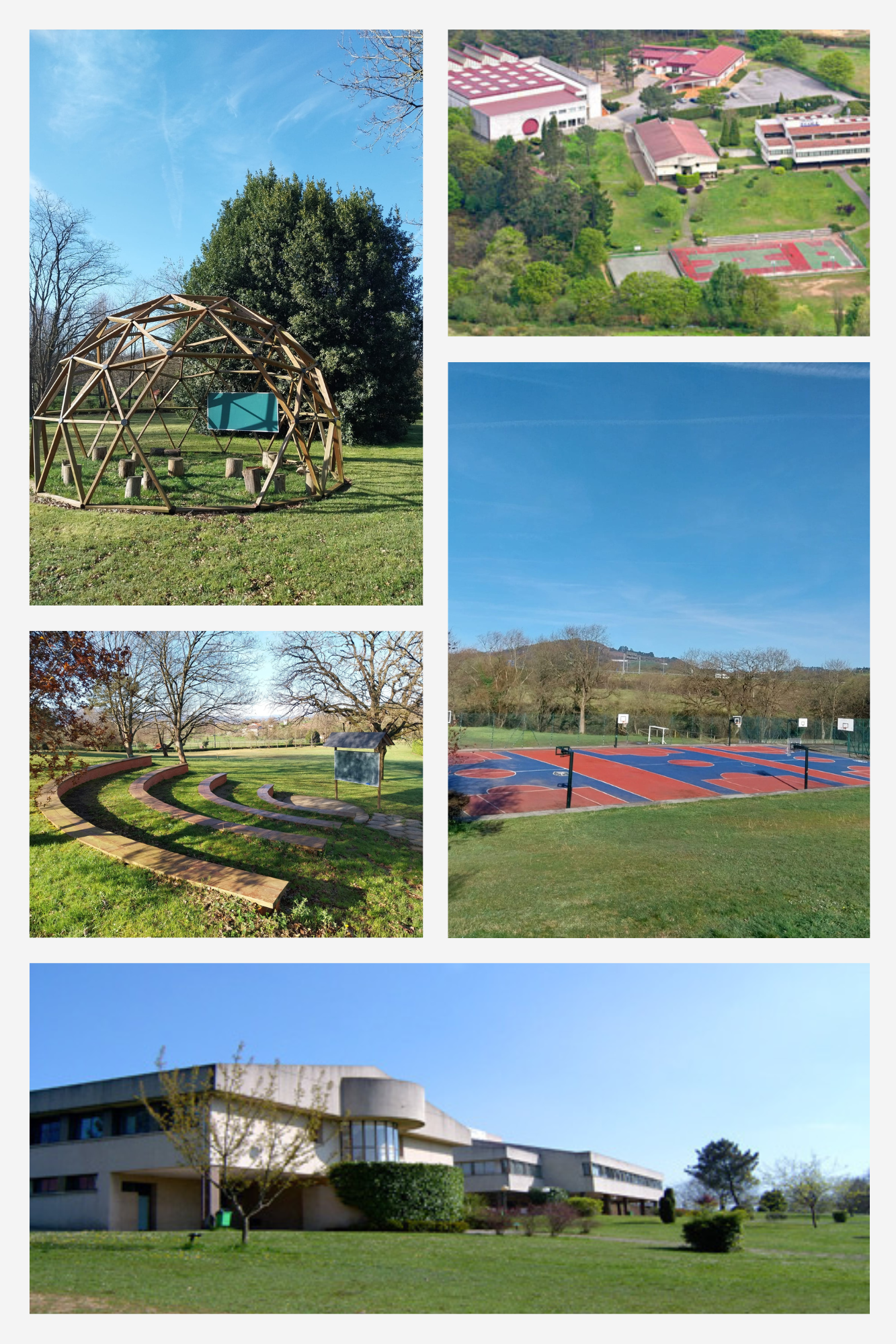 El colegio cuenta con 4 edificios situados en 45.000 m2 de jardines y bosques. Hay un edificio para cada etapa (Infantil, Primaria y Secundaria y Bachillerato), un polideportivo en el que se encuentra también un salón de actos recién estrenado.