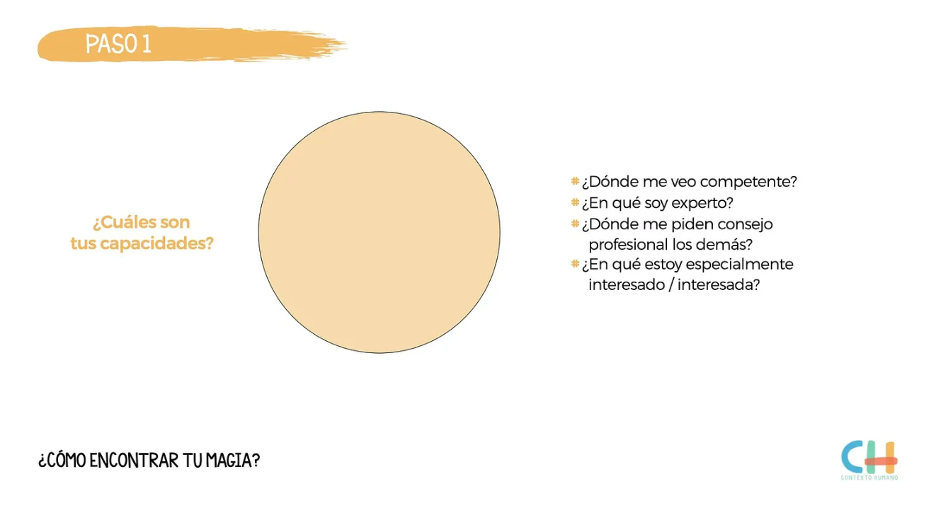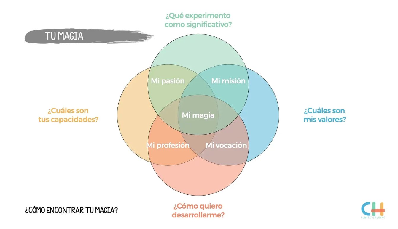 Te proponemos un sencillo ejercicio para descubrir cuál es «tu magia». Quizá te resulte conocido porque es una adaptación del famoso «Ikigai», la palabra japonesa que significa «tu valor en la vida». Se trata de completar cuatro dimensiones de tu persona y encontrar el común denominador de todas ellas.