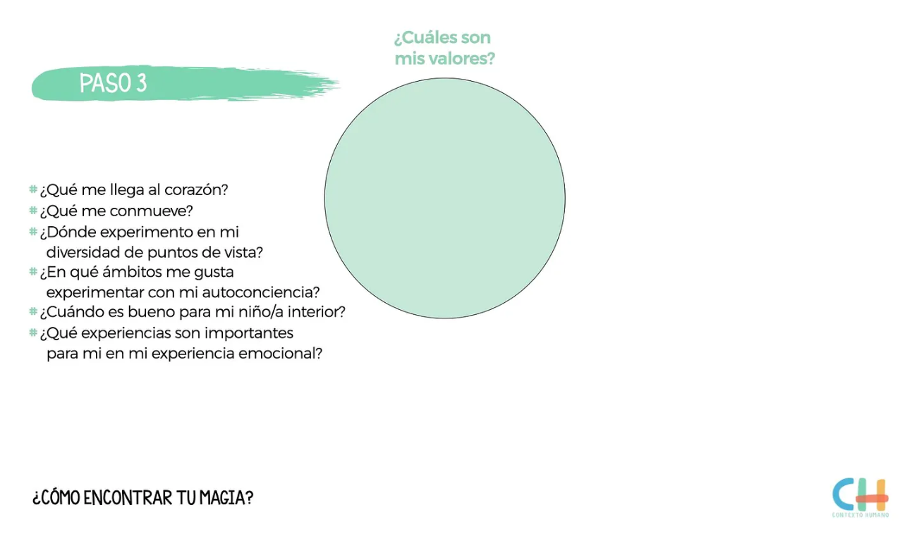El tercer paso apela a tu autenticidad, a tus valores personales. Responde a todas las preguntas para encontrar más claridad.